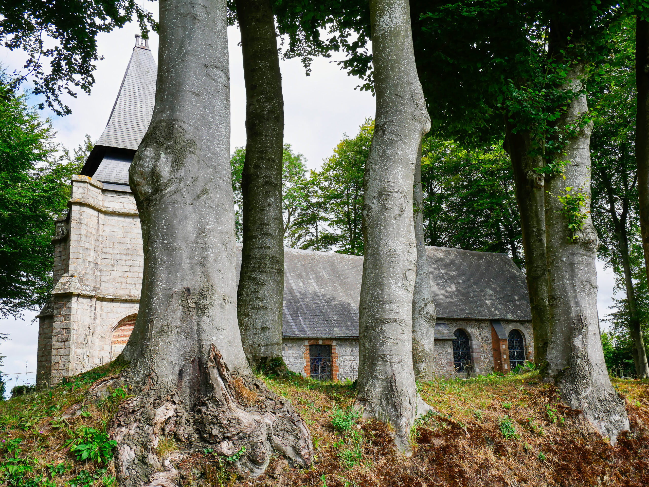 Auf meinem Weg, mir die Bisons und Wölfe im „Parc Canadian“ anzusehen (welcher zu meinem Bedauern nicht geöffnet hatte) stolperte ich bei der Rückfahrt zufällig über Gonzeville. Ein kleiner Ort, dessen Zentrum die Kirche Saint-Samson bildet. Die Kirche und sein alter Friedhof sind eigentlich nicht besonders spektakulär. Allerdings wird dieser Ort von mächtigen Bäumen umringt. Man hat das Gefühl, diese Baumriesen würden über diese sakrale Stätte wachen. Église Saint-Samson strahlt eine starke mystische Aura aus, der man sich kaum entziehen kann.