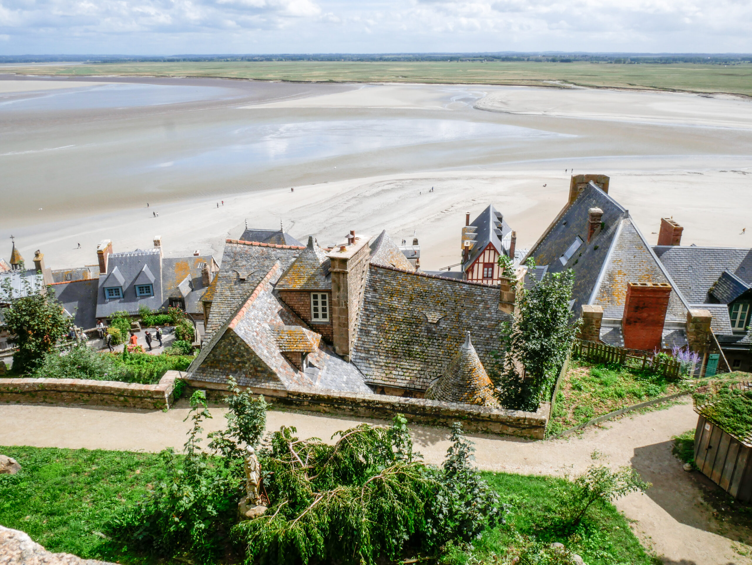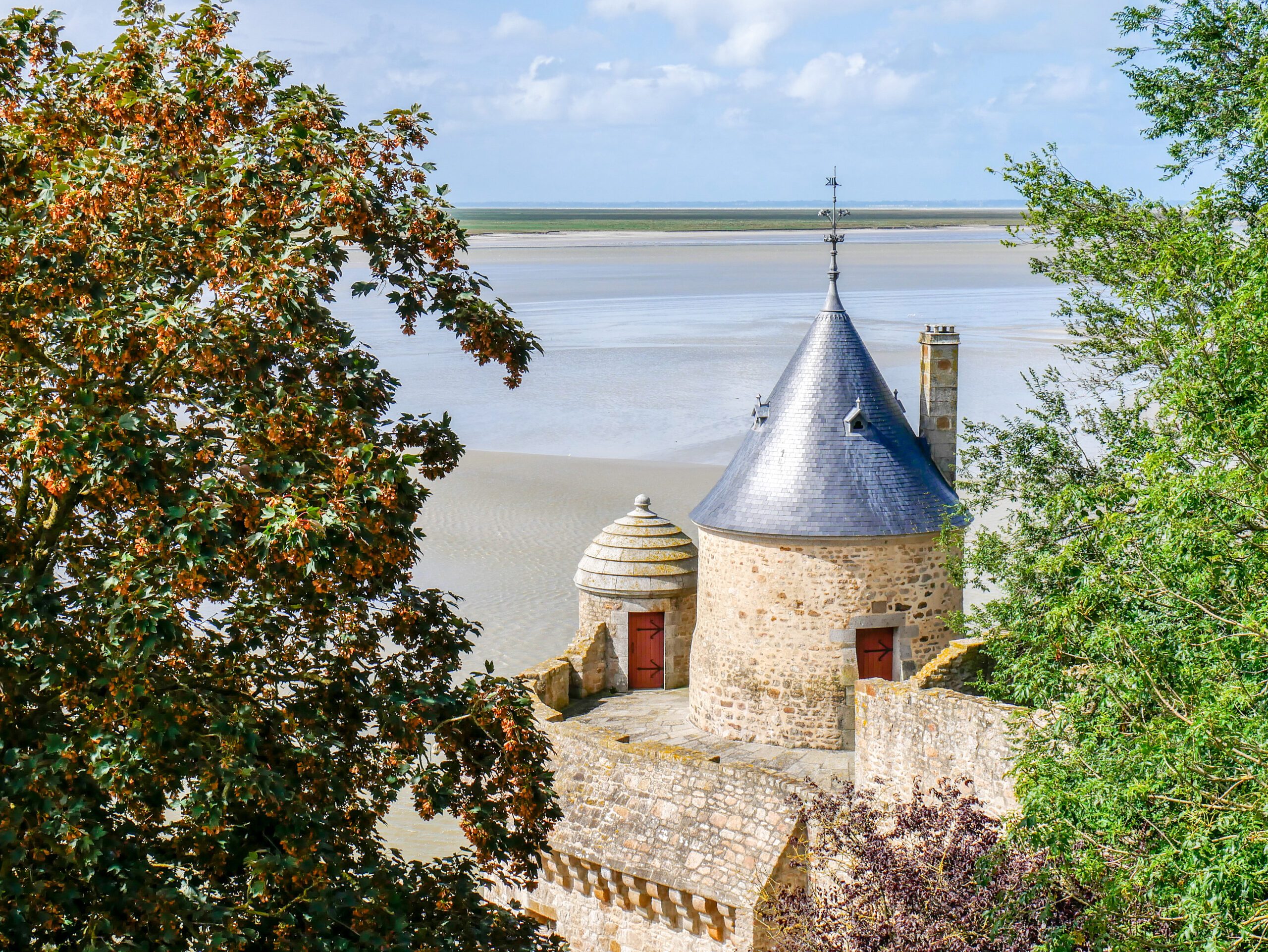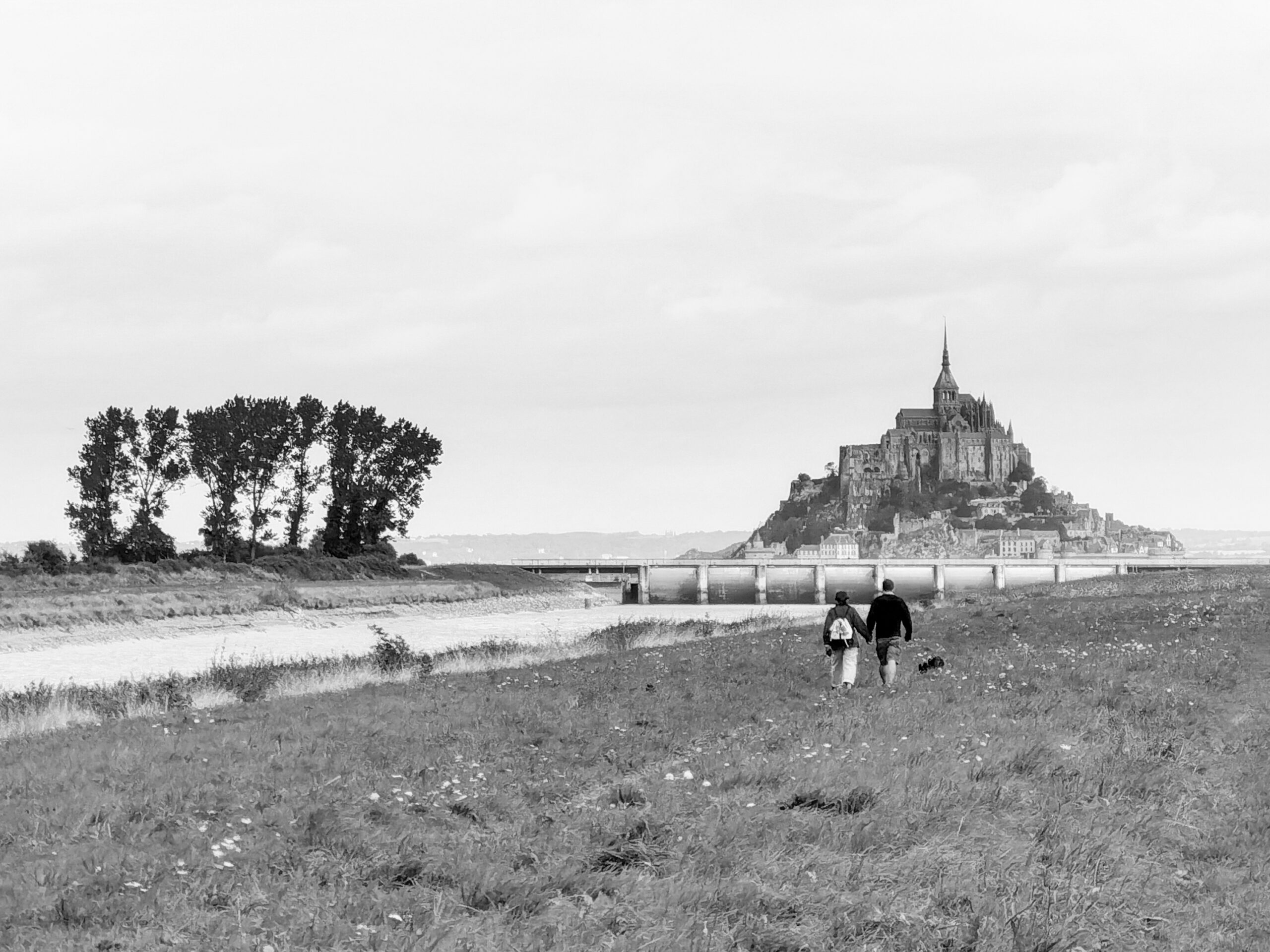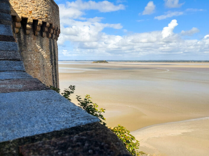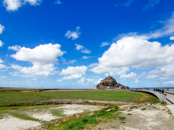 Die Sonne scheint. Auf nach Mont-Saint-Michel! Mit dem Fahrrad fahre ich entlang des Flüsschens Couesnon auf einem schönen Radweg zu einer der meist besuchten Sehenswürdigkeiten Frankreichs. Mont-Saint-Michel hat offiziell nur 23 Einwohner. Aber selbst an einem Wochentag ist der Andrang der Touristen so groß, dass man glaubt, man befände sich am Markusplatz in Venedig. Das ist auch kein Wunder, denn man fühlt sich gleich nach dem Betreten dieses normannischen Dörfchens in eine magische Stimmung versetzt. Die am höchsten Punkt des Hügels erbaute Abtei thront wie eine Königin über Mont-Saint-Michel. Der ganze Ort und die ihn umgebende Bucht gehören zum UNESCO Weltkulturerbe.