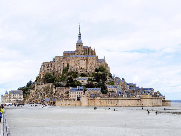 The sun is shining. Off to Mont Saint-Michel! I’m cycling along the small Couesnon River on a beautiful bike path to one of France’s most visited sights. Mont Saint-Michel officially has only 23 inhabitants. But even on a weekday, the crowds are so large that you’d think you were at St. Mark’s Square in Venice. And that’s no wonder, because you feel transported into a magical atmosphere as soon as you enter this Norman village. The abbey, built on the highest point of the hill, towers over Mont Saint-Michel like a queen. The entire village and the surrounding bay are UNESCO World Heritage sites.